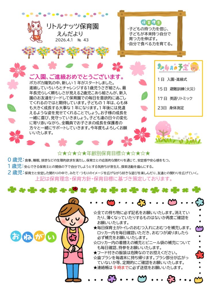 4月の園だより・ほけんだより(2026年度)