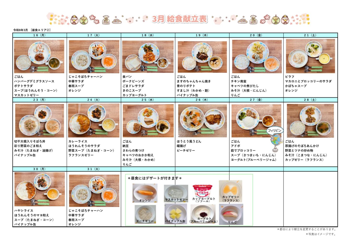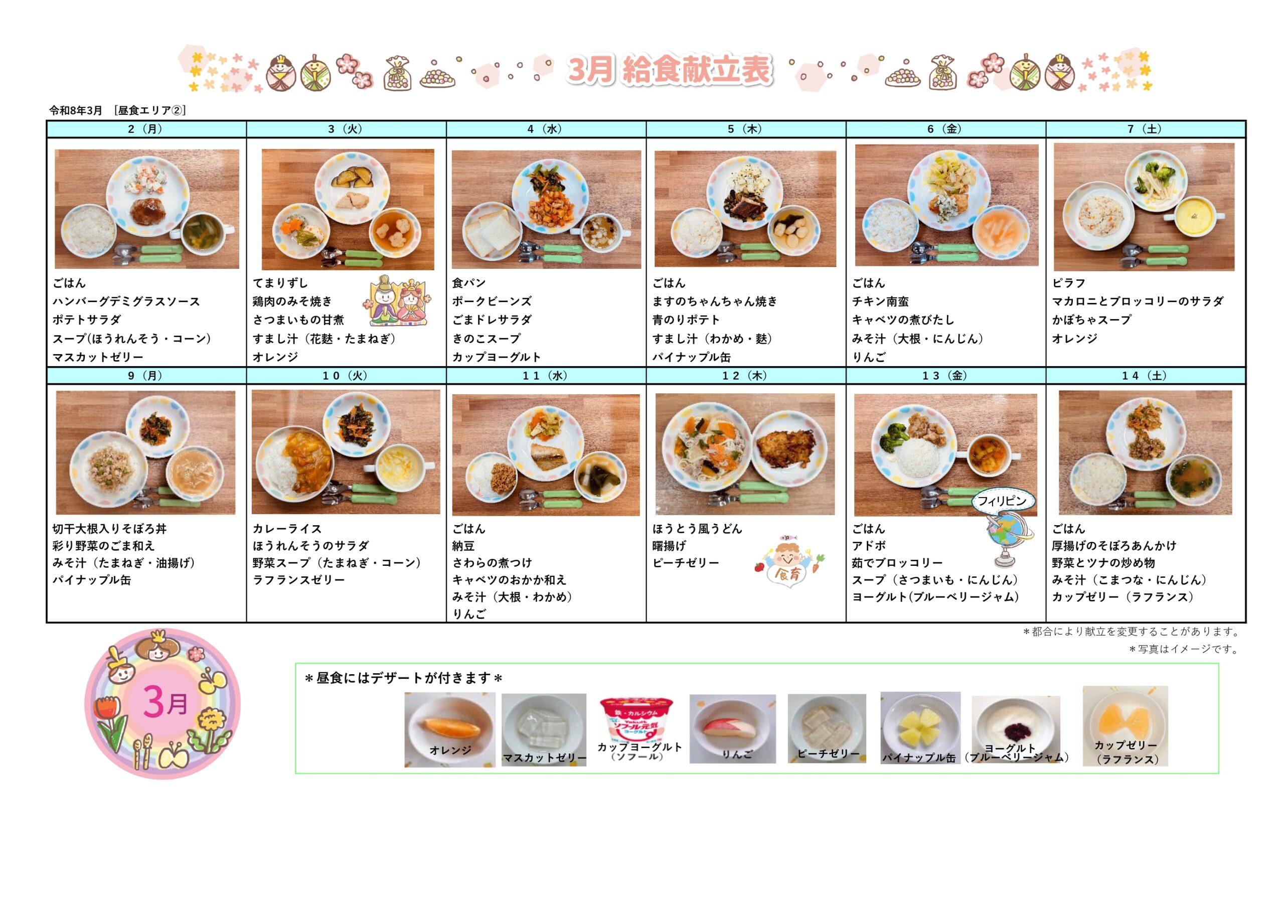 3月の給食だより・献立表(2026年)